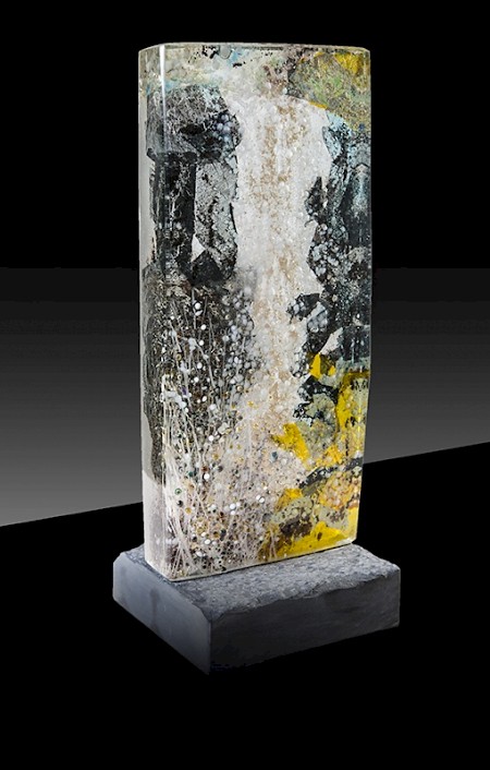 FUSED GLASS WITH ADDITIONS POLISHED AND ENGRAVED