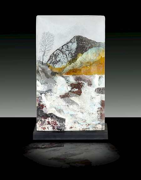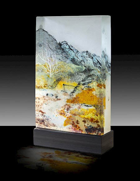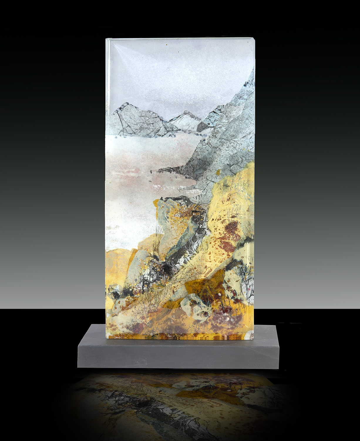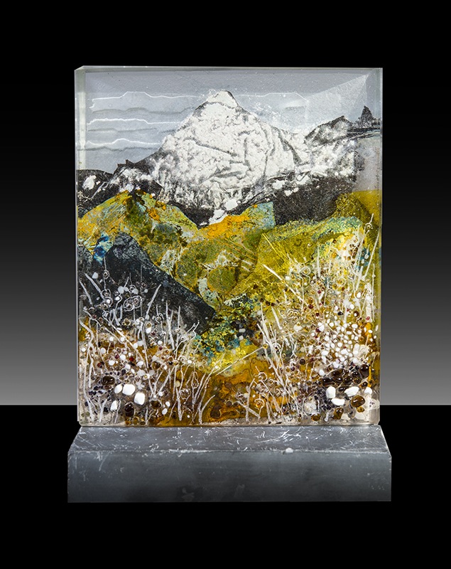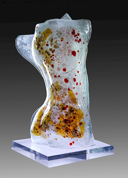 FUSED GLASS WITH ADDITIONS POLISHED AND ENGRAVED