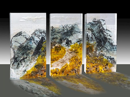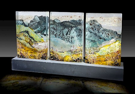 A range of welsh triptych made of 3 glass blocks creating a single view