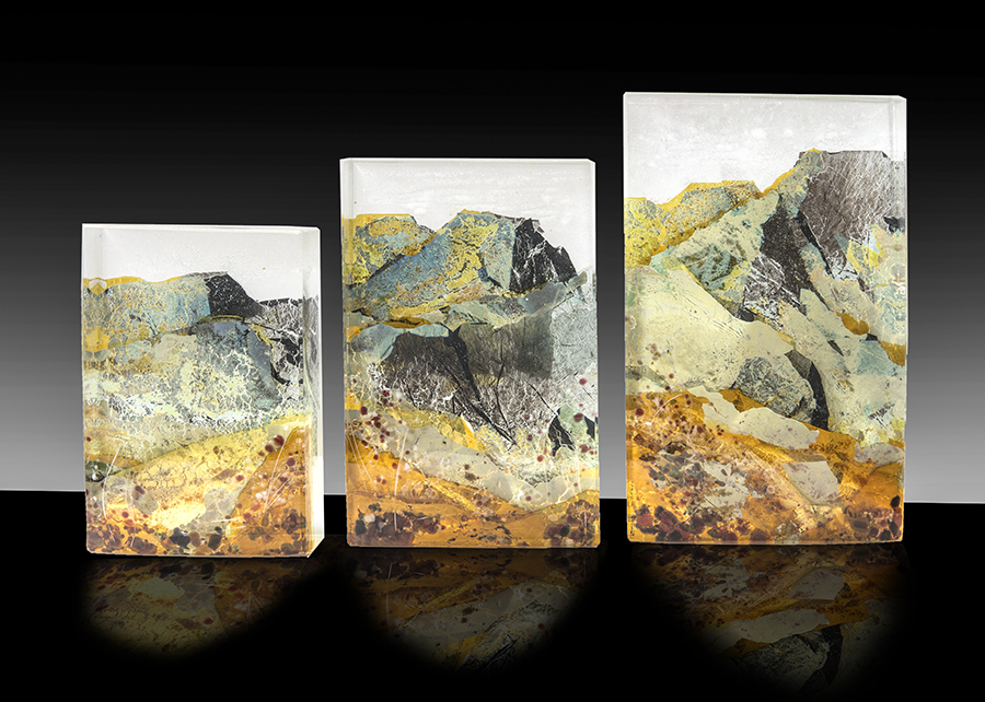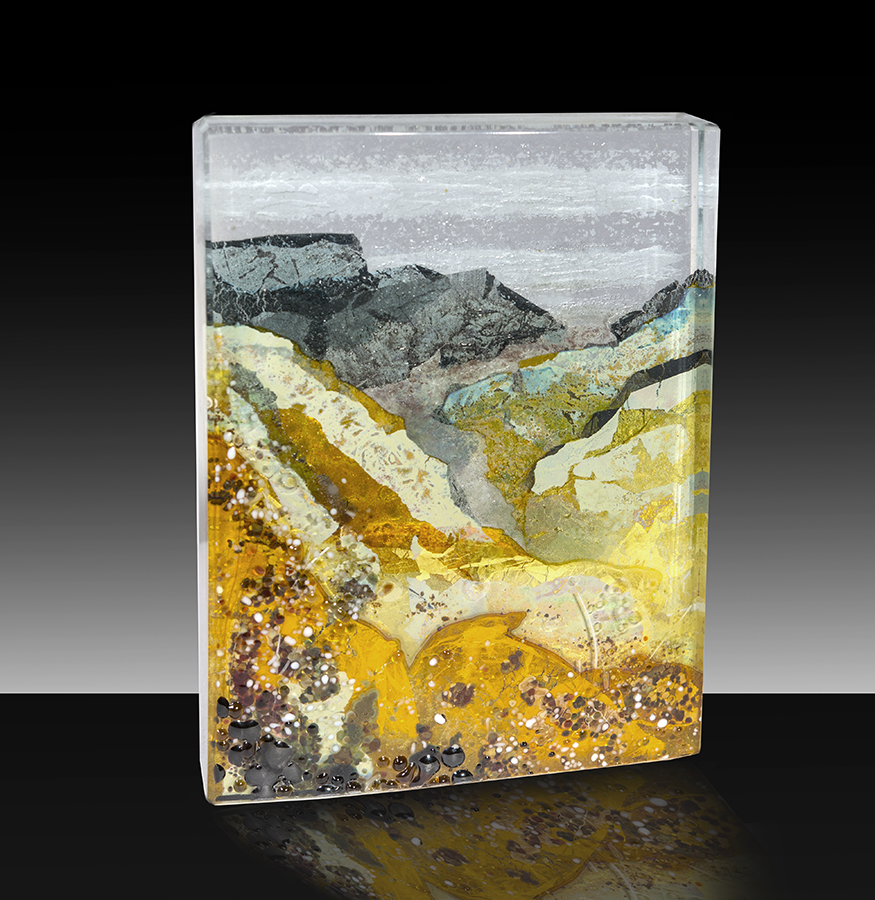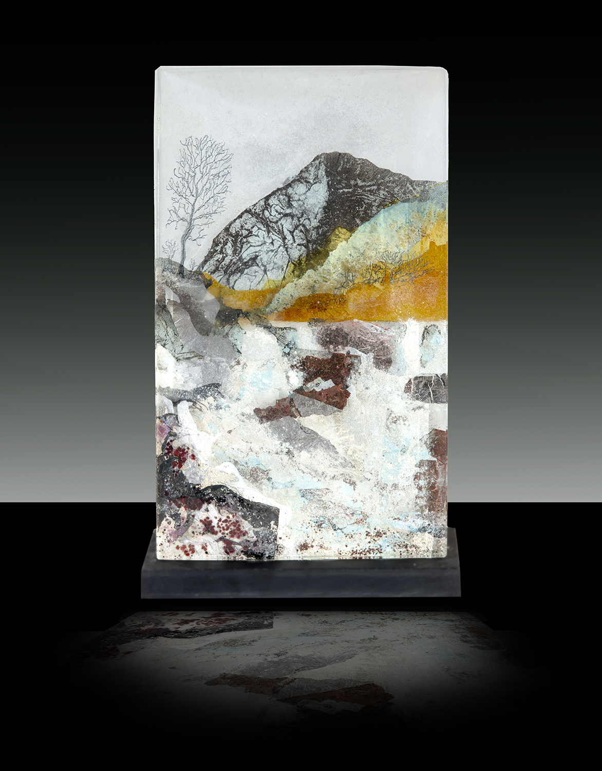 FUSED GLASS WITH INCLUSIONS ON WELSH SLATE BASES